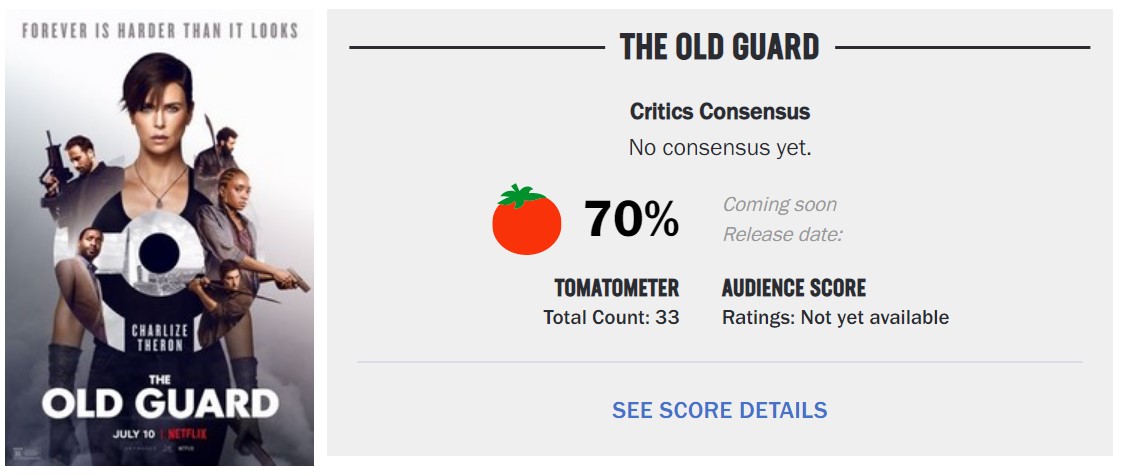 查理兹·塞隆漫改动作新片《永生守卫》将于7月10日正式在Netflix上线,近日,本片的媒体评分正式解禁,M站均分61分,烂番茄新鲜度70%。影评认为尽管本片有模式化痕迹,但是部精彩的娱乐动作大片,塞皇依旧非常出彩亮眼。影片的理念让人着迷,能从多角度思考角色动机、道德和理念,文戏和武戏很平衡。