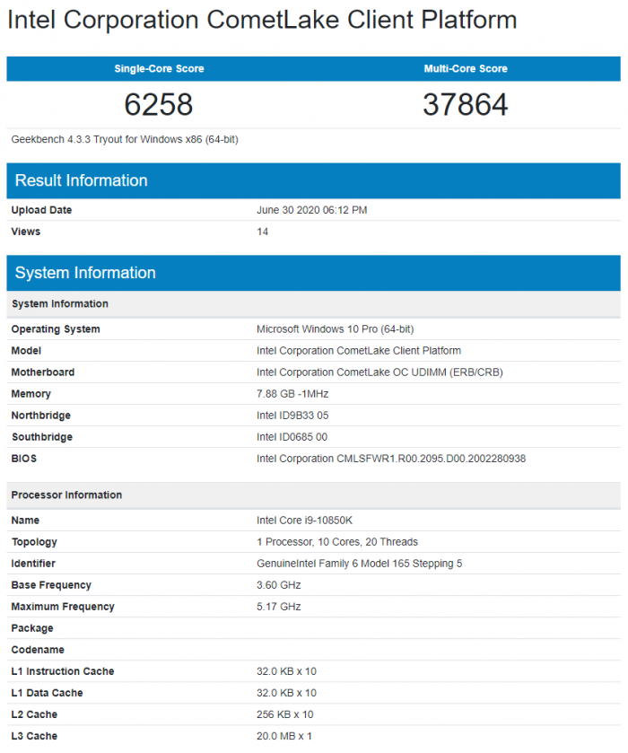 AMD日前发布的锐龙3000XT系列将于7月7日晚间21点正式解禁。有趣的是,Intel也悄悄准备了一款新品,但不是提频,而是降频,这就是“酷睿i9-10850K”,已经出现在GeekBench 4测试数据库中。