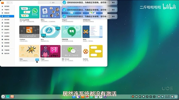 操作系统是统信软件UOS,但竟然是未激活状态,需要再花800元,才能从应用商店下载并不算丰富的软件,或者试用激活90天。