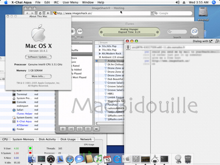 2006年1月10日,苹果发布了Mac OS X 10.4.4与第一代基于Intel x86架构的Mac电脑(iMac和MacBook Pro)。值得一提的是,iMac Core Duo速度较G5处理器的iMac快了2至3倍。一个月后,该操作系统被一个crg92的程序员成功“黑”掉......