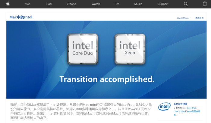 ↑苹果和英特尔宣布合作时的官网