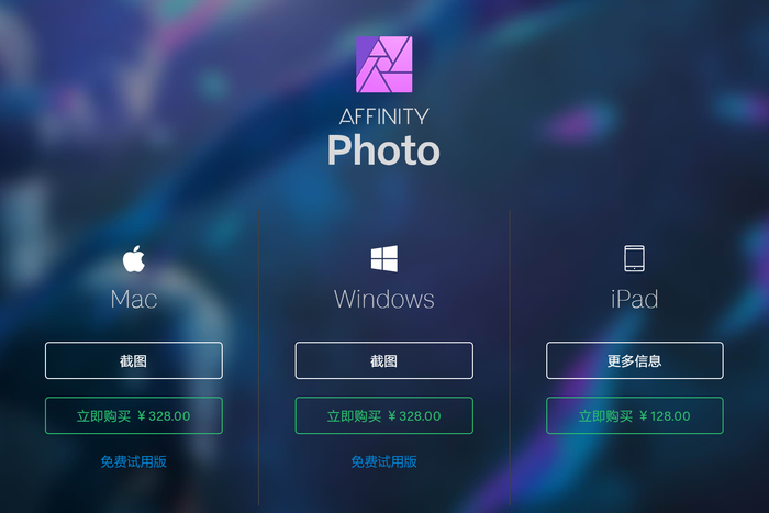 ·跨平台。Affinity Photo支持Windows、macOS和iOS平台,在三个平台中,都可以直接通过应用商店购买到正版。