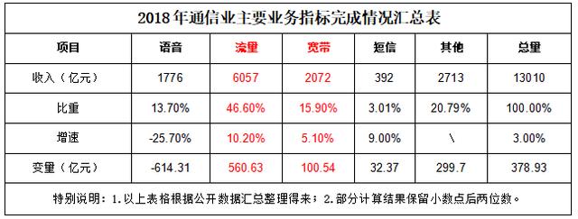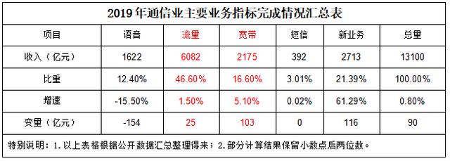 与流量单价过快下滑直接相关的就是流量收入的加倍下滑。2018年和2019年的流量收入数据非常清晰地展示了运营商流量增量不增收的尴尬。运营商口口声声的流量经营已经在2019年出现了明显的空间有限势头。