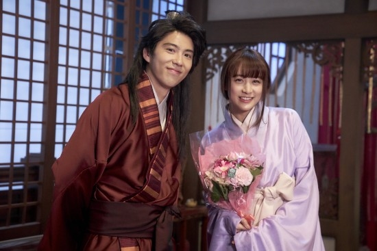 日本三国题材电影《新解释三国志》昨日公开了首批女演员,饰演黄月英的桥本环奈和饰演小乔的山本美月,除了定妆照,官推另外公布了一张周瑜&小乔夫妻私下的片场照。昨日恰逢饰演周瑜的贺来贤人的生日,手捧鲜花的小乔山本美月同贺来贤人开心合影,二人都是电影中的造型。