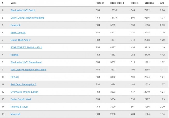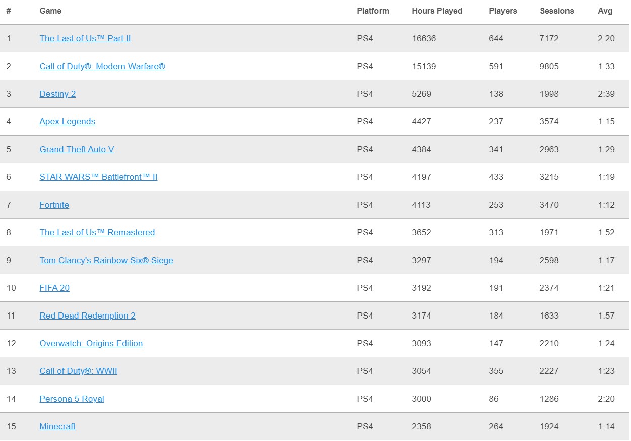 很多玩家都很关心自己玩游戏、打通关的时间长短。据悉一名国外网友制作了一个网站,可以追踪玩家在PS4上面玩游戏的时长,并且能统计每月游玩时长最多的PS4游戏。PS4玩家可以添加名为“ps-timetracker2”的机器人当好友,之后该机器人就会在玩家联网时自动记录游玩时长。