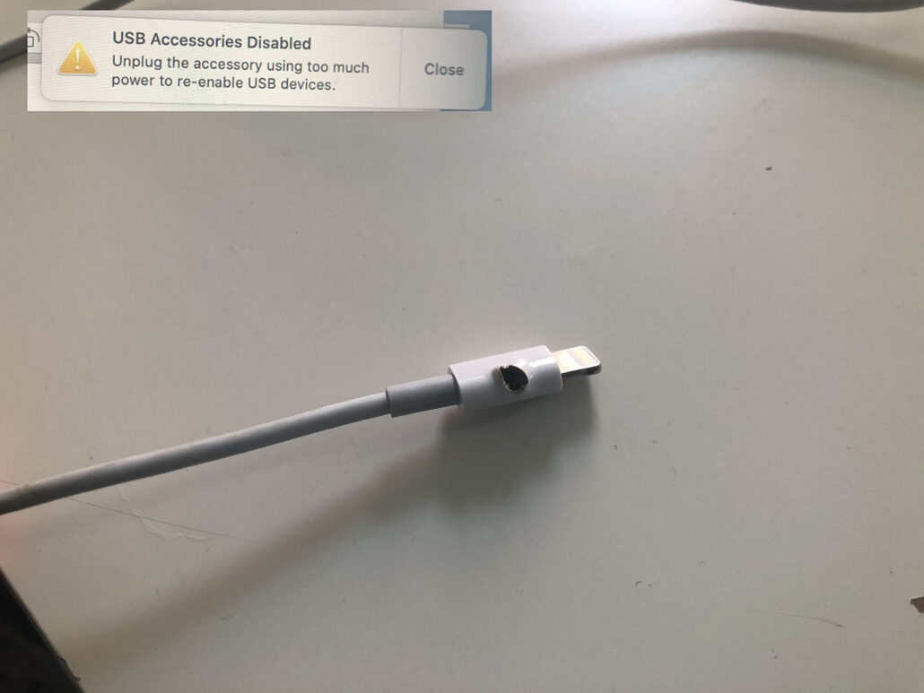 幸运的是,对他来说,MacBook成功地禁用了所有的USB端口,正如你在上面的图片中看到的那样。这是一个真正有用的特性,以防止对机器造成不可挽回的损害,但我们并不知道是否所有的MacBook乃至所有的Windows 10笔记本都有类似功能,但使用未经认证的第三方线缆或充电器确实很有可能会破坏主板,问题发生后不仅需要整体更换主板,还很有可能需要更换连接在主板上的NVMe存储驱动器、Wi-Fi网卡等组件。