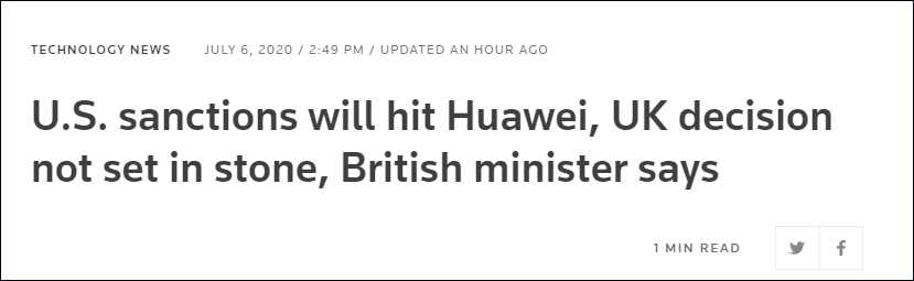 英国数字化、文化、媒体和体育大臣奥利弗·道登(Oliver Dowden)当地时间周一表示,英国允许华为参与部分英国5G网络建设的决定并非“一成不变”,目前英国正在对这一决定进行审查。今年1月,英国宣布允许华为参与未来英国的部分5G网络建设,并将华为的网络份额限制在35%以内。但英国国家网络安全中心(NCSC)一直在研究美国5月份所宣布措施可能带来的影响。