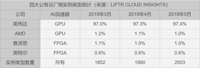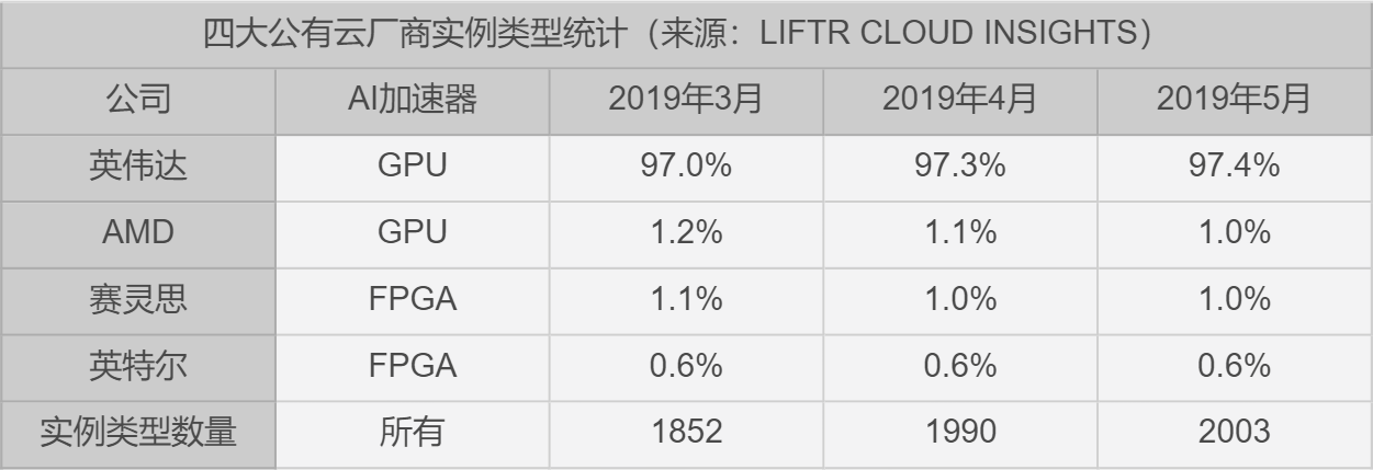 云端、企业级数据中心芯片市场,排名前四位的公有云厂商亚马逊 AWS、微软 Azure、谷歌云、阿里云的上万余个实例类型中,只有很小一部分不基于英伟达 GPU 加速。