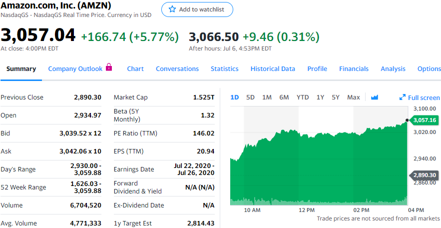 亚马逊股价首次突破3000美元
