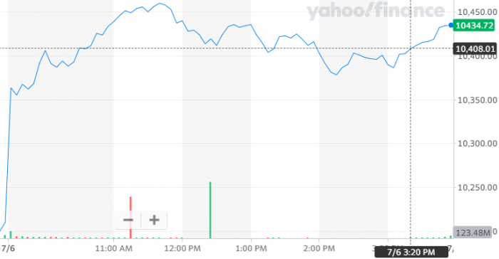 纳指报收10433.65点,再创历史新高