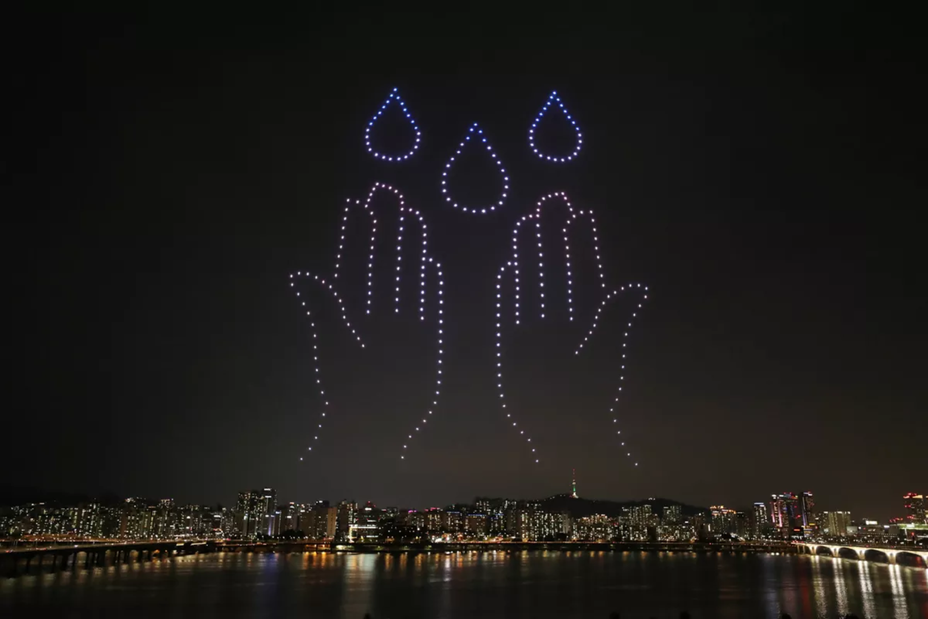 韩国政府组织无人机表演感谢一线医疗工作者并提醒民众做好防护