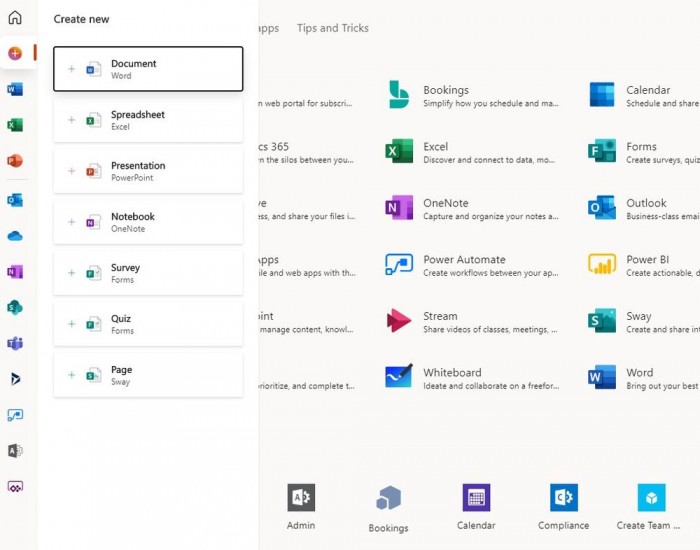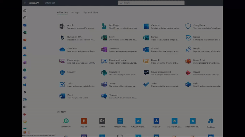 新版用户界面目前仅限于 Microsoft 365 Business 用户,相信会很快推广到消费者账号上。新界面设计简洁,当鼠标悬停在 Microsoft 365 应用图标上的时候,都会看到一个淡灰色的阴影效果。此外,还有一个更新的圆形的 Create 图标和 All apps 图标。