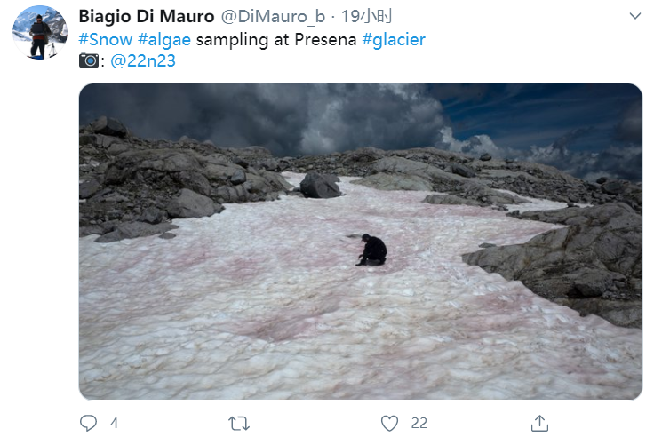 意大利国家研究委员会极地科学研究所的研究人员Biagio Di Mauro称,意大利北部普雷塞纳冰川出现了粉色雪(也叫 “西瓜雪”)。虽然意大利阿尔卑斯山在春夏时节出现这些这种现象并不罕见,但当这种由藻类引起的现象开始频繁发生时,科学家们就会变得担忧。